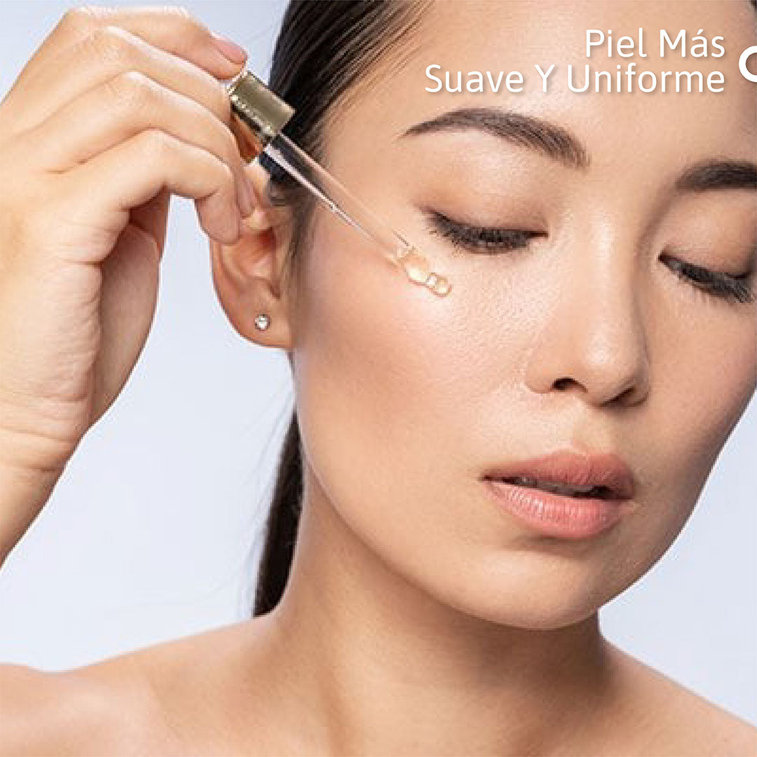 ✅ Corrección de Manchas: Uniforma el tono, actuando sobre manchas oscuras.